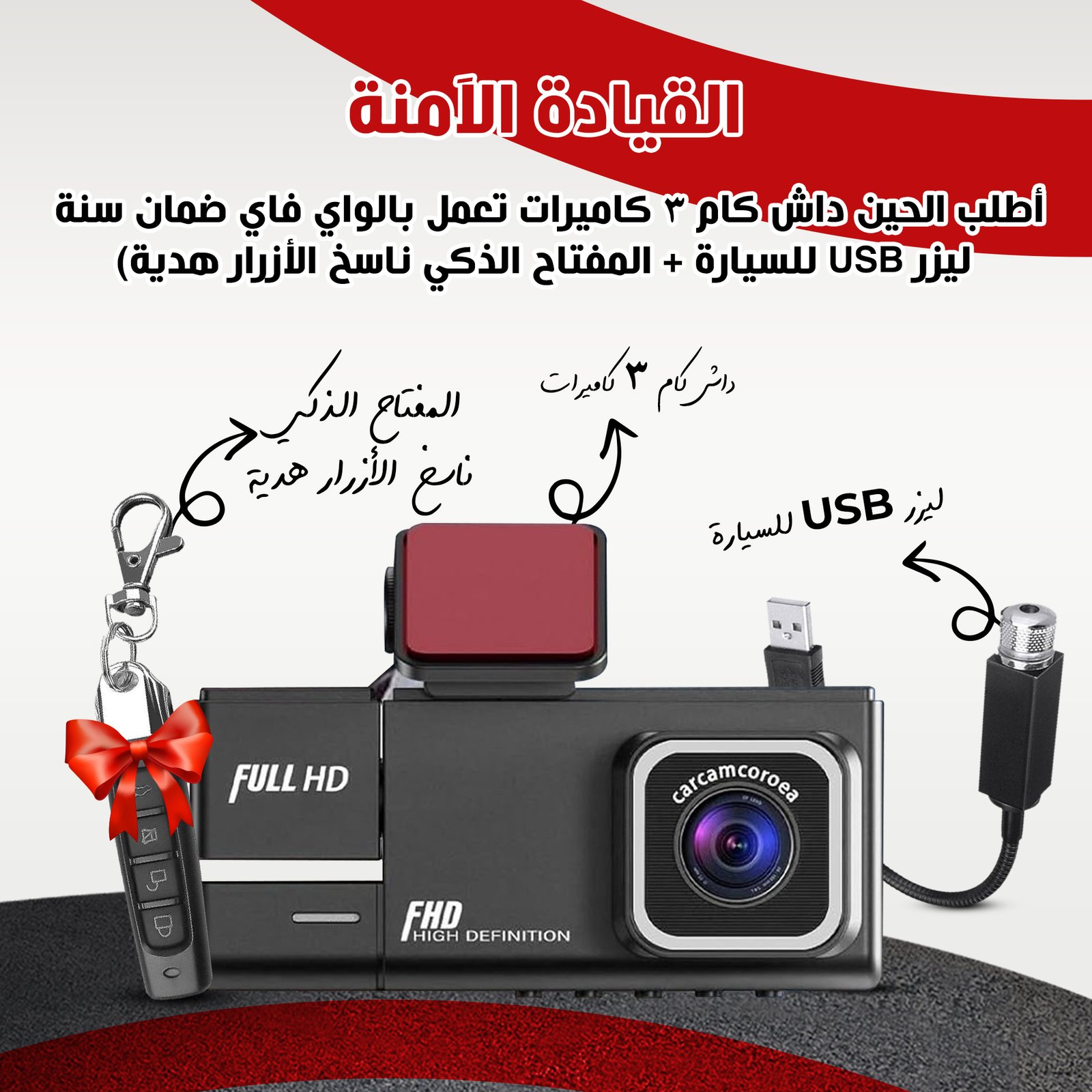 360 Protection Bundle (Dash Cam 3 Wi-Fi Cameras with 1-Year Warranty + USB Laser for Car + Smart Key Button Duplicator Gift)